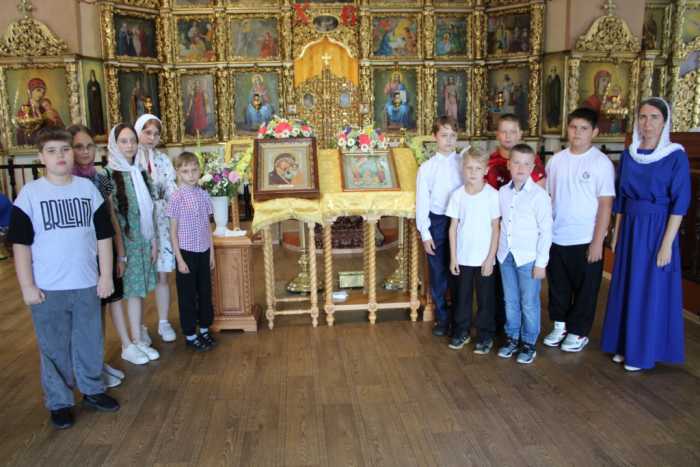 О Казанской иконе Божией Матери ребятам рассказала помощник благочинного по работе с молодежью Светлана Рыжакова. Дети вместе с преподавателем мысленно перенеслись в старинный г. Казань и узнали историю о девочке Матроне. С ней связано обретение чудотворной святыни. По легенде, девятилетняя Матрона трижды видела во сне Пресвятую Богородицу, которая указывала ей место под развалинами дома, где находился Ее чудотворный образ. Девочка рассказала об этом видении родителям и местному священнику Ермолаю, и икона действительно была найдена в указанном месте. Обретение Казанской иконы Божией Матери произошло 21 июля 1579 года в Казани, через четверть века после покорения царем Иоанном Грозным Казанского ханства.