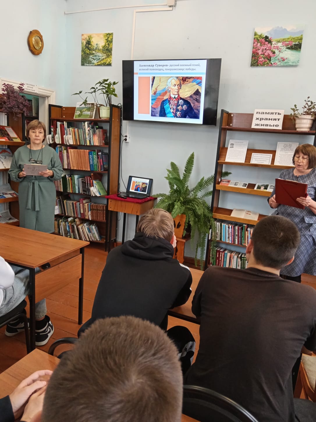 С помощью электронной презентации библиотекари представили интересные и познавательные факты из жизни А.В. Суворова, показали видеофрагменты о знаменитых битвах. Аналогичные мероприятия прошли и в сельских библиотеках Мглинского муниципального района.