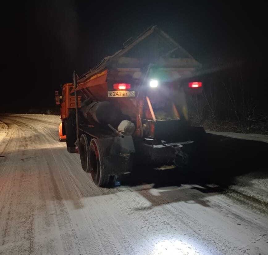 На дорогах Брянской области продолжают круглосуточно бороться со снегом и гололёдом