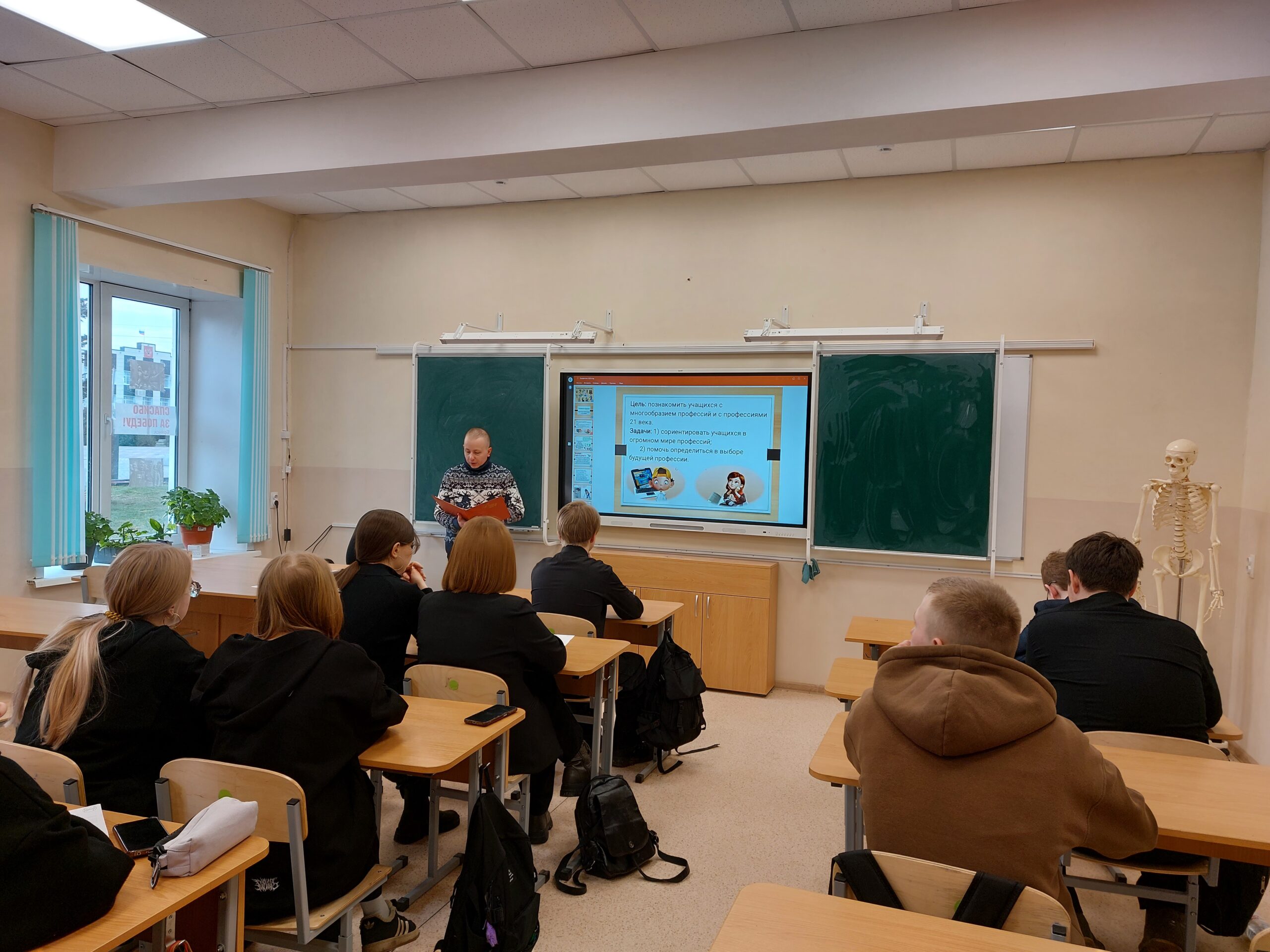 Участниками мероприятия стали заместитель директора школы по воспитательной работе Л.И. Щигарцова и учащиеся 9 А класса. Школьники узнали, что ежегодно появляется до пятисот новых профессий. Всего же, согласно единому тарифно-квалификационному справочнику, насчитывается около шести тысяч профессий. Библиотекарь читального зала Алексей Нахаёв познакомил учащихся с многообразием профессий. Узнали школьники о таких новейших и перспективных профессиях, как аварийный комиссар, арбитражный управляющий, байер, бастер, валютный трейдер, девелопер, логистик, спичрайтер, хостес, хэдхантер, профессиовед.