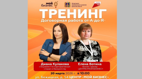 Центр «Мой бизнес»-Брянск приглашает предпринимателей на практический тренинг по договорному ...