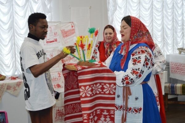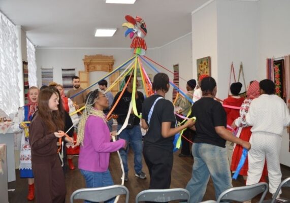 Ансамбль «Макоша» провёл для ребят экспресс-путешествие по народному календарю, поиграл в игры и исполнил фольклорные композиции. Студенты с интересом слушали и сами подпевали.